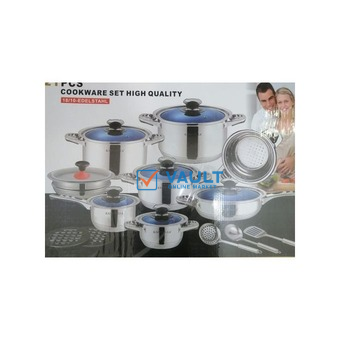 21 Pieces Of Heavy Stainless Steel Saucepans Cookware, Silver.