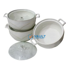 3 Piece Lined Self Design Serving Dishes With Gold Design