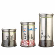 3 Piece Sugar Bowl Food Storage Tin Jar Canister Set - Color May Vary.