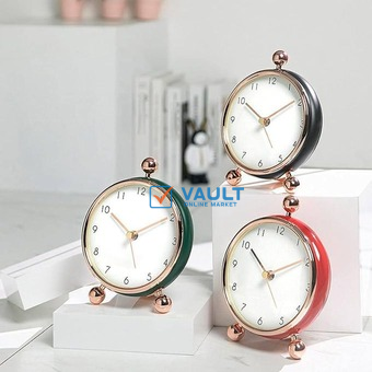 6 inch Analog Alarm Clock, Modern Silent Metal Non-Ticking Table Clock Small Battery Operated Clock for Bedroom, Bedside, Desk Ornaments - Multicolor