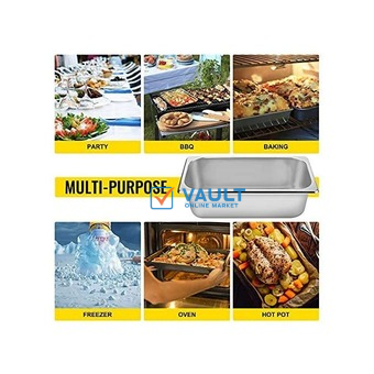 • 【WIDE APPLICATION】- Features a non-stick surface for better food release and easy cleaning. These stainless steel pans are suitable for catering party portions, broiling, baking, cakes, pies, casseroles, cooking, etc. Safe for use in freezer, oven, steam table, and chafing dishes.