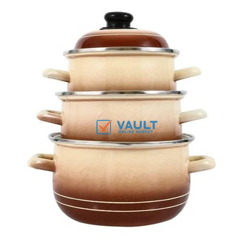 Carbon steel enamel pots. Traditional way of cooking with the modern kitchen. End of pot edges: stainless steel ring. Enamelled handles Enamelled coating on the outside and inside of the pot. Dishwasher-safe. Ideal for low-fat preparation. Non-stick. Suitable for cooking and storage.