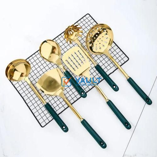 6Pcs Kitchen Tool Cooking Utensils Serving Spoons Cutlery Set - Gold