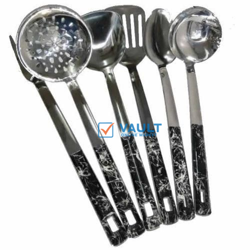 7 Piece Stainless Steel Animal Print Holder Kitchen Tool Cooking Utensils Serving Spoons Cutlery Laddle Set-Silver.