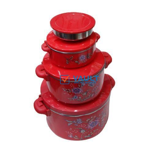A Set Of 4 Beautiful Serving Dishes - Red, Silver