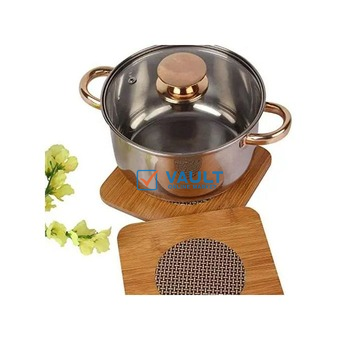 Bamboo 2 Pc Bamboo Coaster Heat Pad Table Mats For Saucepans, Brown.