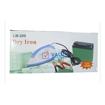 • Solar energy 12v Dc Electric dry iron.Dry use only.Voltage:Dc 12Max. watt:150wMax. current: 12.5AMax. temperature:150°C Automatic temperature control system Can work with car battery duration time:If working with 100ah battery can be used for 7hours With 3meters copper cable and clampsBattery not included