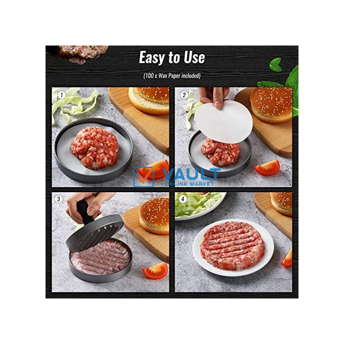 • 100p Wax Paper: Package includes 100 pieces free burger paper, could prevent the finished burger from sticking to each other, and makes your frozen burgers easy to separate