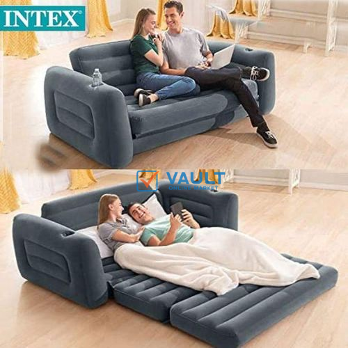 Intex Inflatable Sofa Bed Pull-Out Chair Inflatable Bed With Pump - Grey/Black