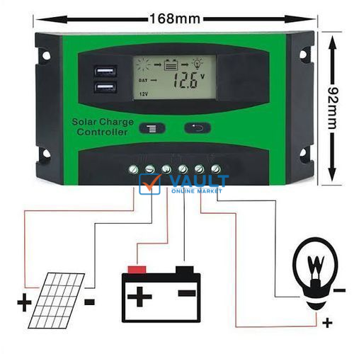 Pwm Solar Charge Controller 30A 12V 24V Auto PWM With 5V Dual USB Port Multiple Protection LCD Display Solar Panel Charging Discharging Regulator - Green
