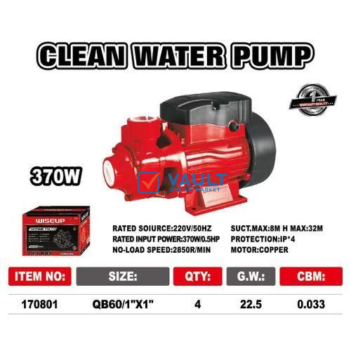 WISEUP Electric Clean Water Pump 370W - Red