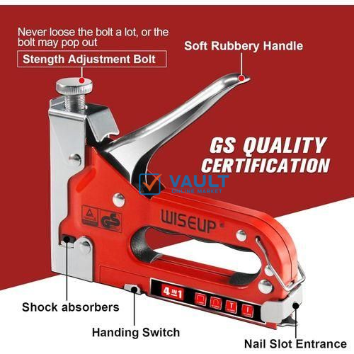 WISEUP Staple Gun For Wood 4 In 1 Heavy Duty Stapler Gun With Staples - Silver/Red