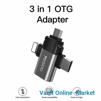 Yesido 3 In 1 OTG USB 3.0 Super Fast Data Transmission Adapter GS15- Multicolor